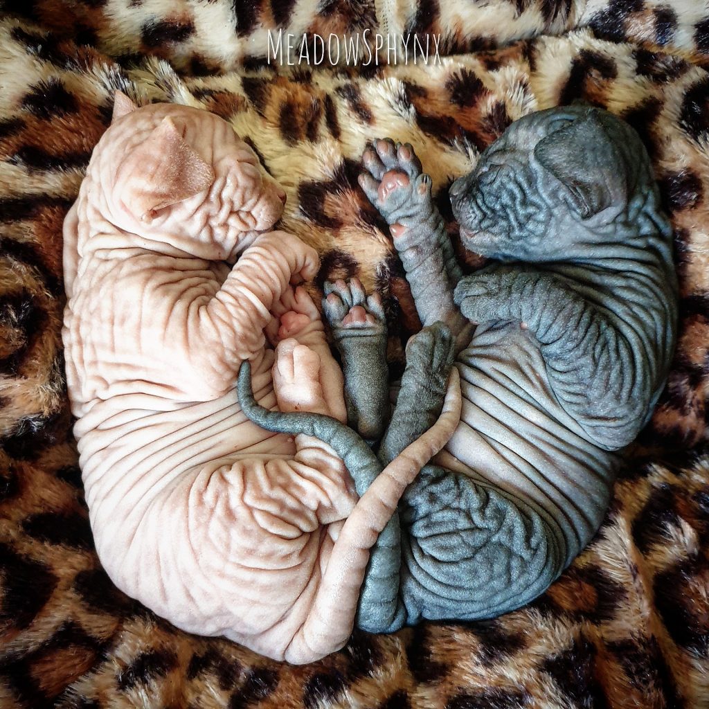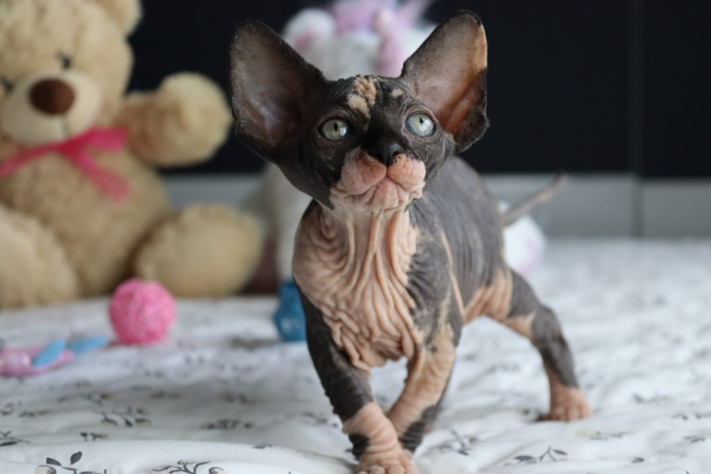 One of the most important things about a sphynx it’s their skin. Make sure you talk about it with the breeder of your kitten. Most of sphynx have a little hair. Some more then others, and this can be caused by the genes, hormones and temperature. Often sphynx will “grow” coat for winter. This is not something that is desirable in the breeding cats but it does happen. Let’s not forget sphynx have descended from domestic cats and have been outcrossed to other hairy cats so the hair run in their blood.